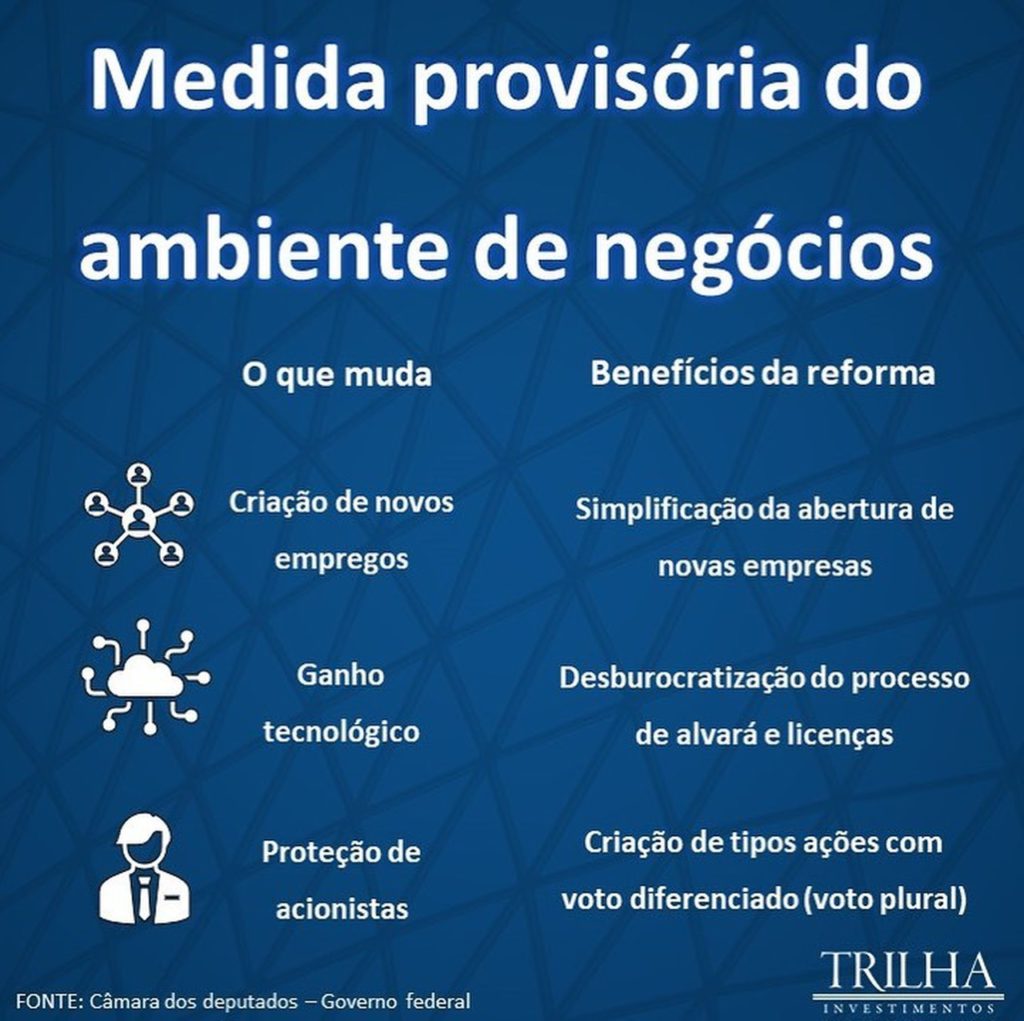 Na última quarta-feira, 23 de junho, a Câmara dos Deputados aprovou a Medida Provisória 1.040 de 2021, conhecida como a “MP do Ambiente de Negócios”. Dentre as principais alterações estão a criação de uma nova modalidade de ações ordinárias em empresas, com pesos diferenciados ao voto, assim como uma maior flexibilização para a abertura de empresas.