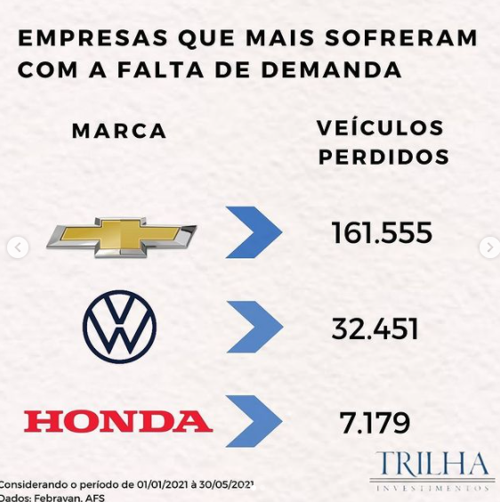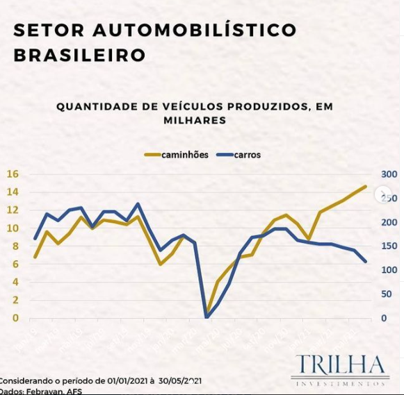 Por outro lado, a venda de veículos pesados não foi afetada severamente, por serem produtos de maior valor agregado do que carros populares. Com a escassez de chips as montadoras preferiam produzir um caminhão a um carro, já que o mercado de commodities está muito aquecido. Consumidores das categorias de caminhões e equipamentos têm absorvido aumentos de preços com mais facilidade do que consumidores gerais.